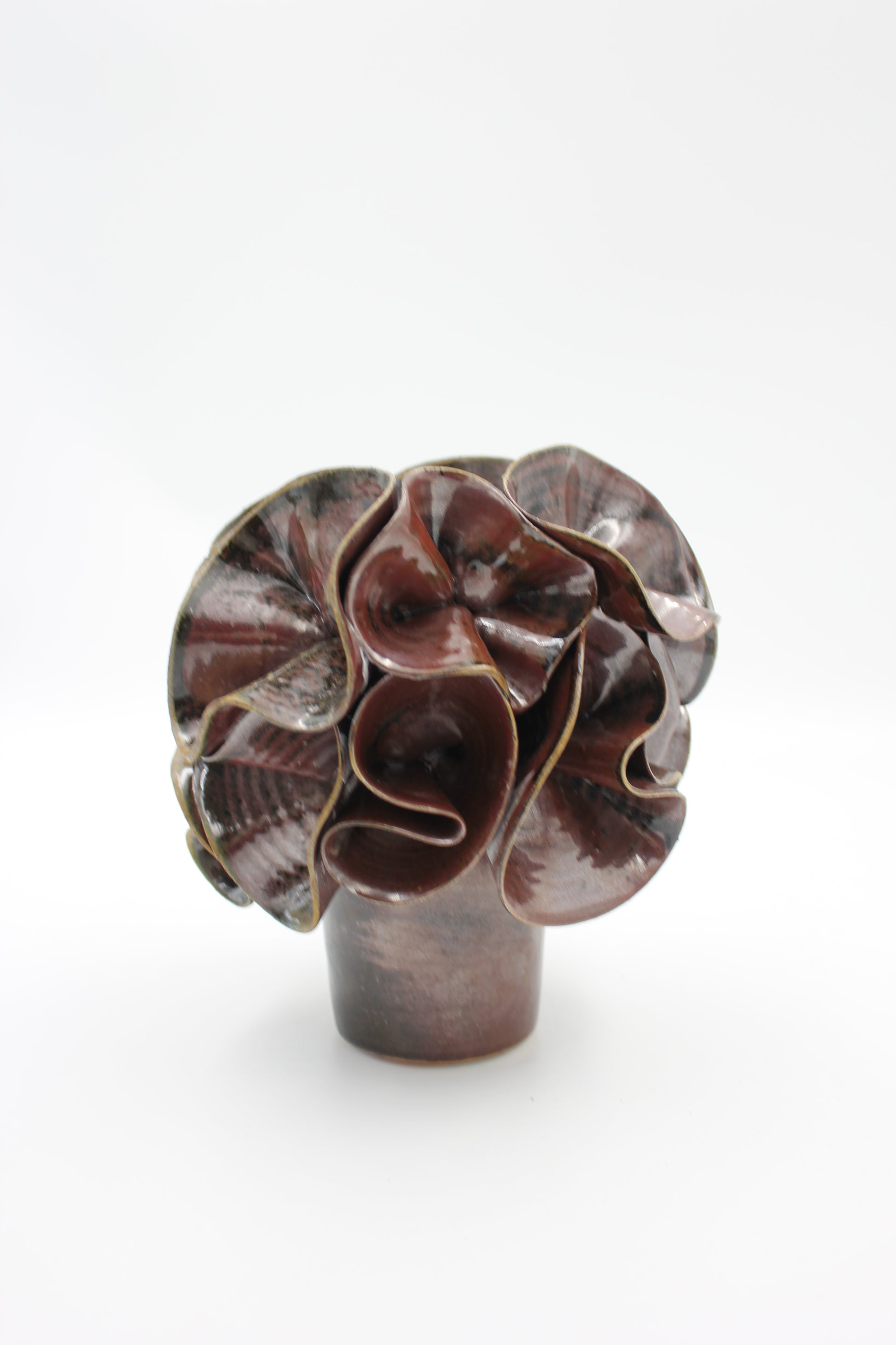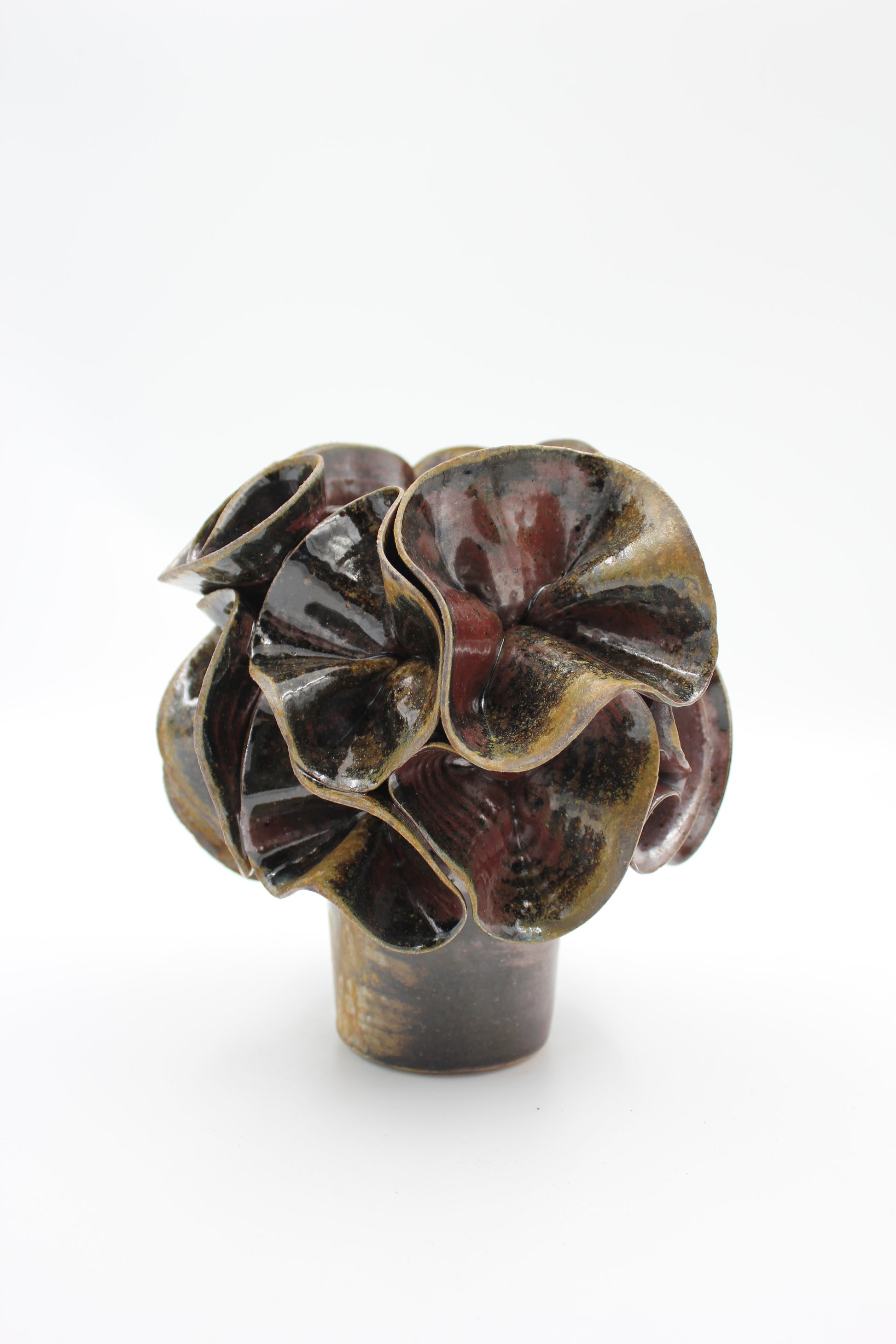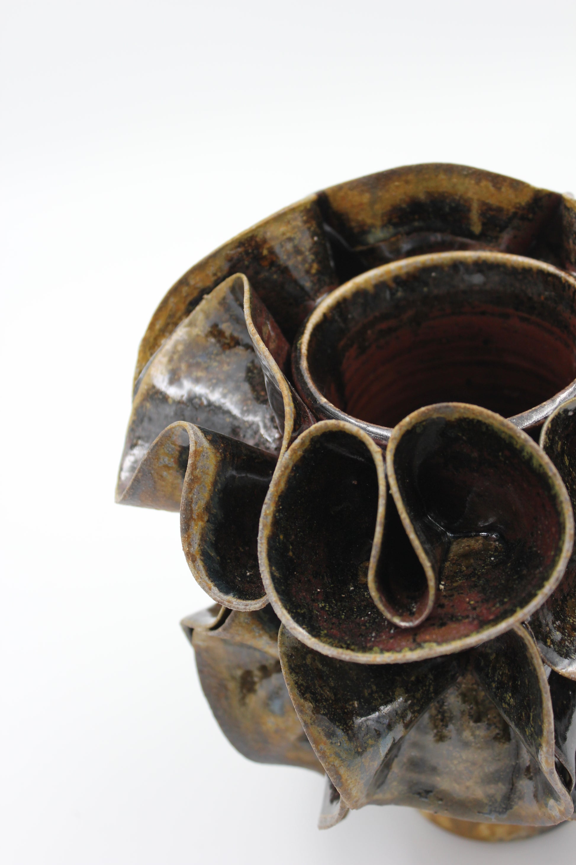 Drejad och skulpterad vas i stengodslera. Bränd i vedugn.